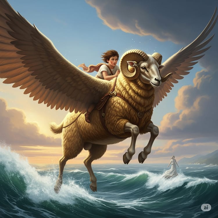 Tam Phrixus kurban edilmek üzereyken, göklerden ilahi bir müdahale gelir. Çocukların öz annesi, bulut perisi Nephele (bazı kaynaklara göre ise tanrı Hermes), altın rengi yünleriyle göz kamaştıran, kanatlı ve konuşabilen mucizevi bir koç olan Chrysomallos‘u gönderir. Bu koç, sıradan bir hayvan değildir; postu saf altından parlamakta ve göklerde uçabilmektedir.